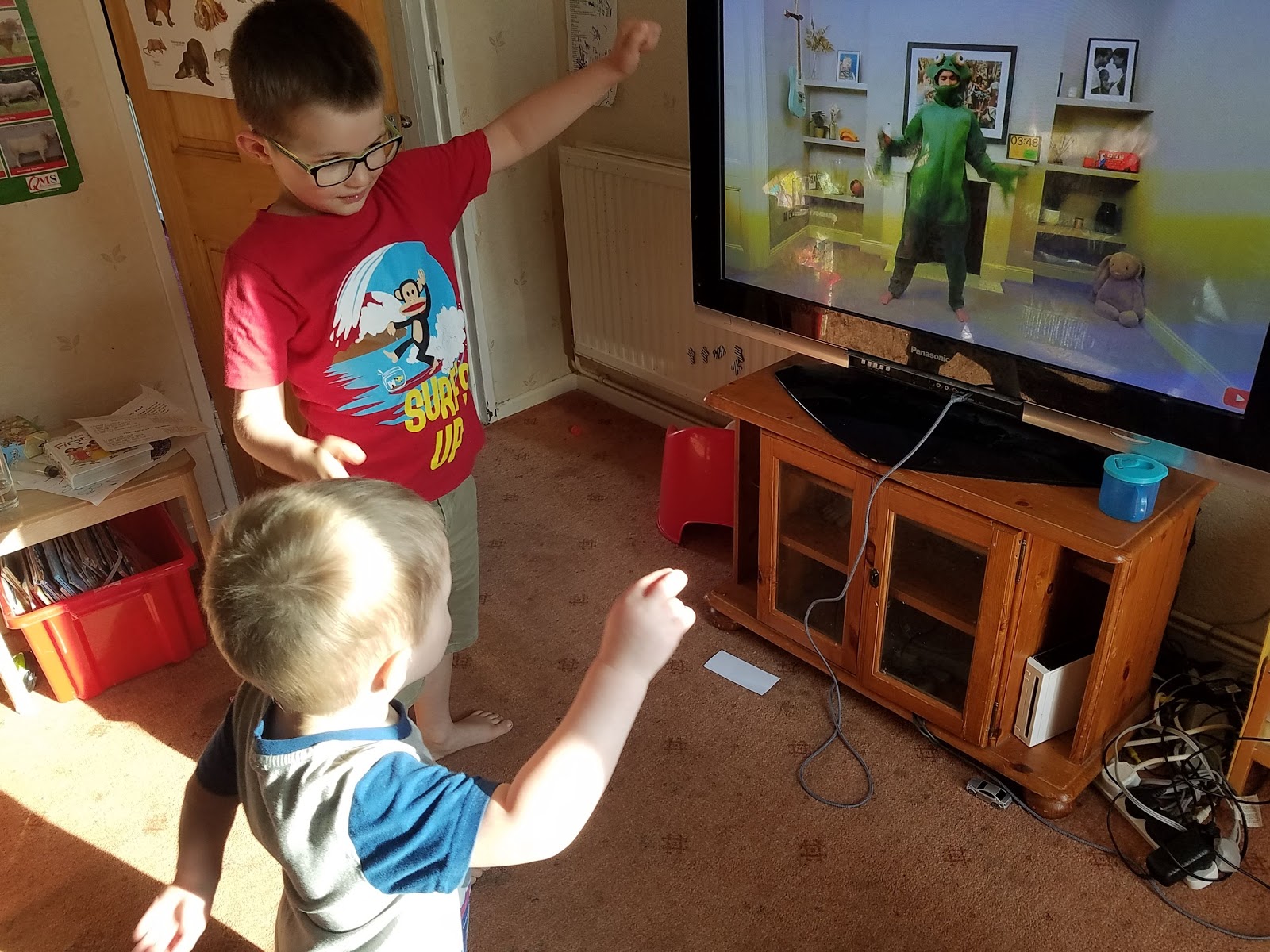 | The boys were excited to see Joe Wicks dressed as a frog today for their PE class |